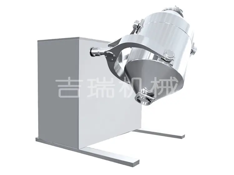 • 混料器具有三维运动,从而使物料在流动,剪切,平移,扩散的作用下,使其由集聚到分散状态并完成互相掺杂的过程,保证了物料混合均匀,均匀度可达99.9%以上。普通混合机,物料在容器内只作分合的简单运动,效率低,混合质量差;