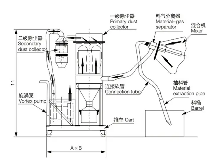 用于粉状,小颗粒状(<5mm)及球状物料。用于二维、三维、双锥、v型等各种密闭容器和设备的上料。